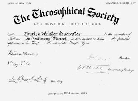Am 7. April 1884 lernte Leadbeater auf einer turbulenten Wahlversammlung der Londoner Loge Helena Petrovna Blavatsky und Henry Steel Olcott kennen. Von Frau Blavatsky war er so tief beeindruckt, dass er sich von diesem Tag an mehr und mehr von der anglikanischen Kirche zurückzog und der Theosophie zuwandte.